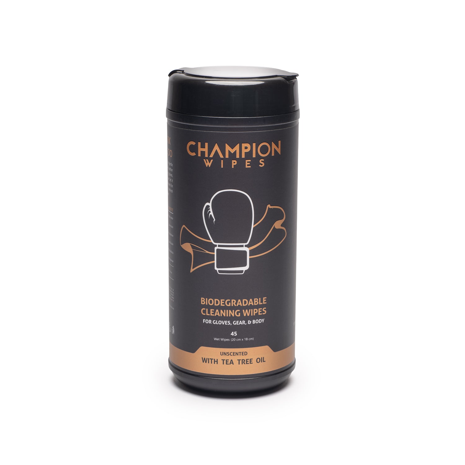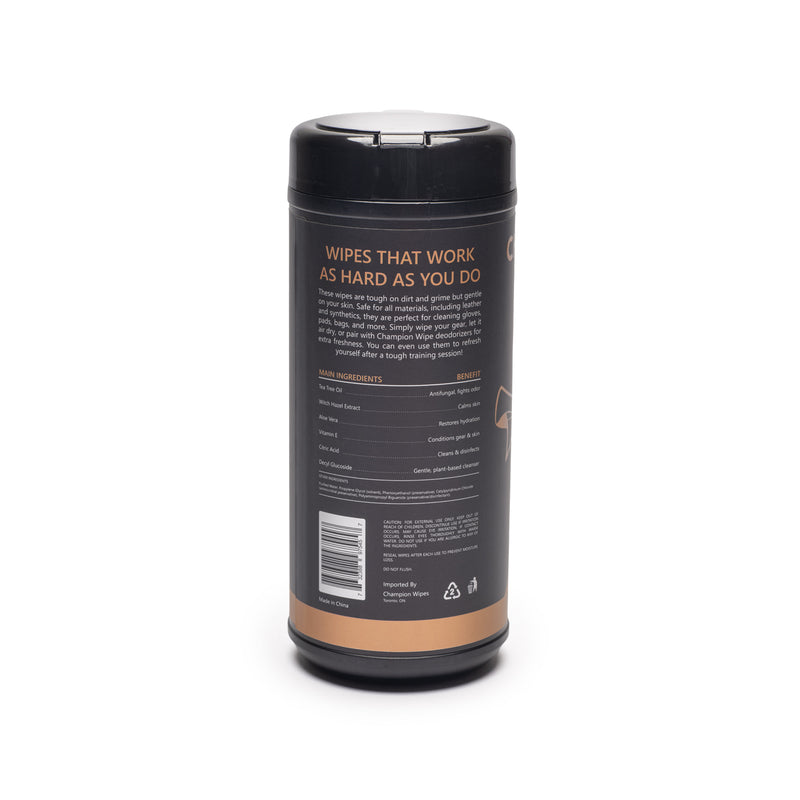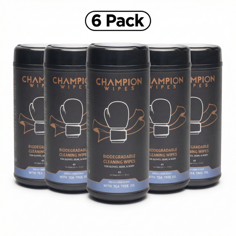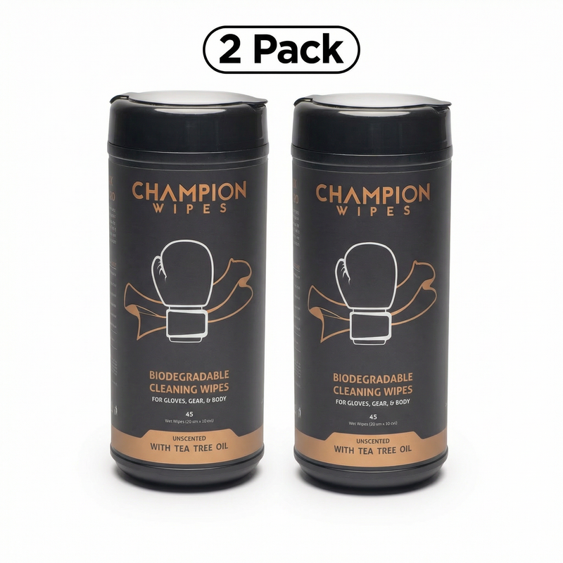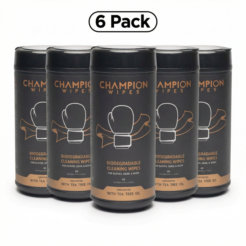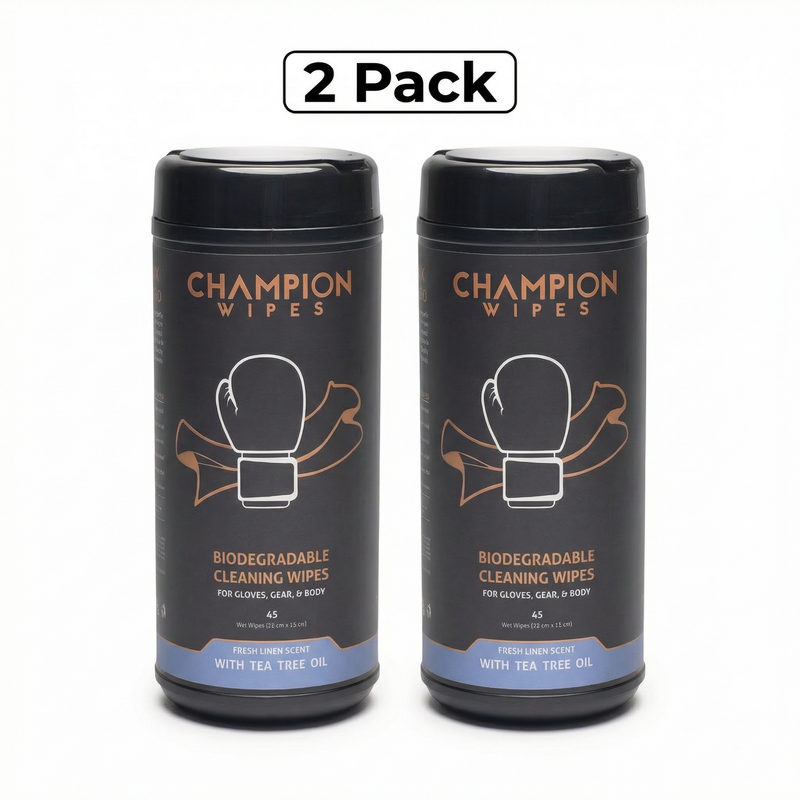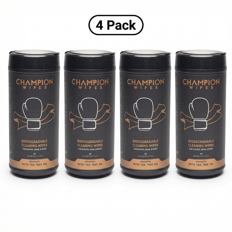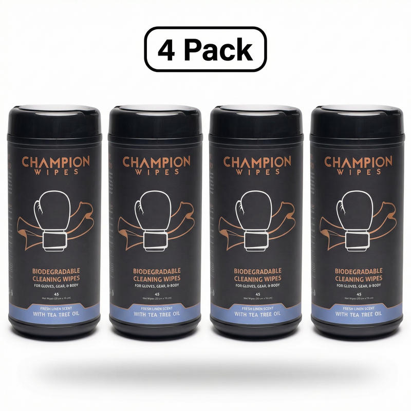 Champion Wipes are purpose-built for fighters. A heavy-duty cleaning wipe with a natural Tea Tree Oil antifungal formula that actually does something. No streaks. No chemical smell. No damage to your leather.